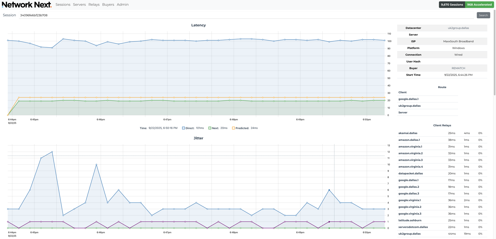 We couple this with a route optimization system that selects the relays that packets are sent across, making sure that only routes with the lowest possible latency, jitter and packet loss are taken, and multi-path, where we send packets across multiple routes at the same time to reduce packet loss.