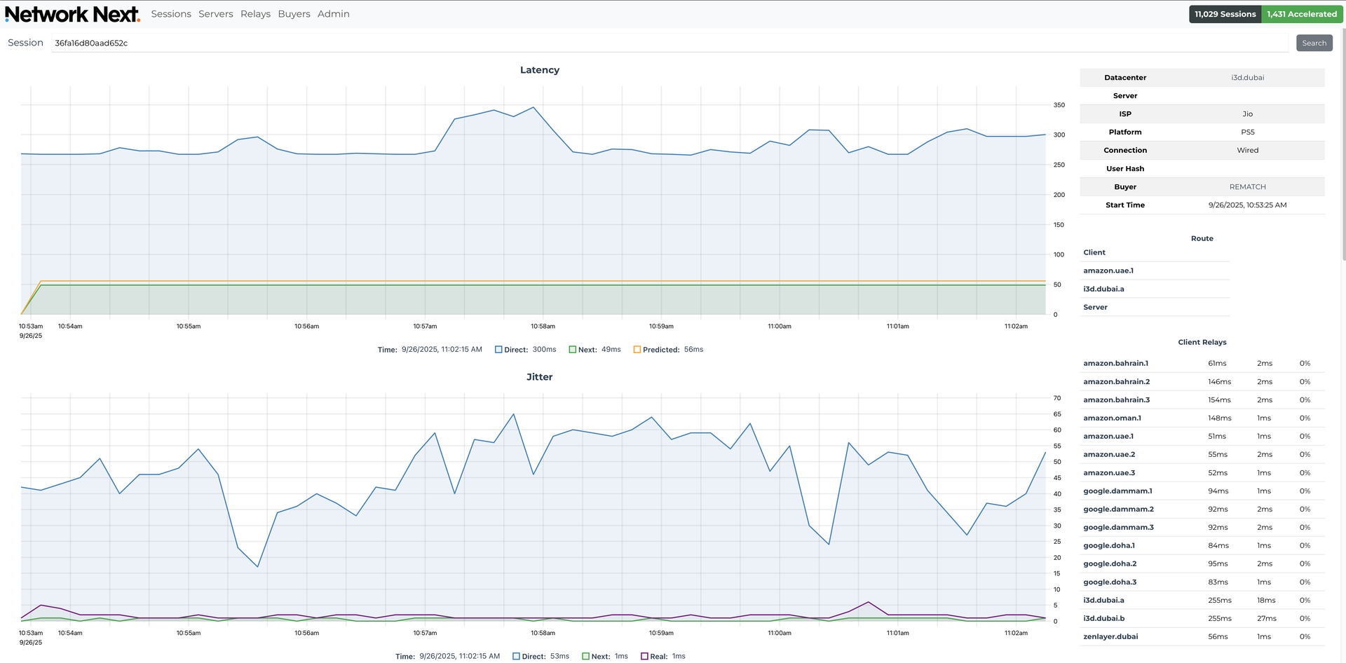 A player in India being accelerated to servers in Dubai: