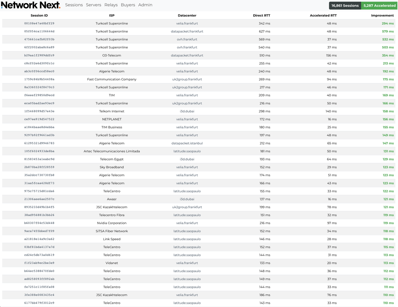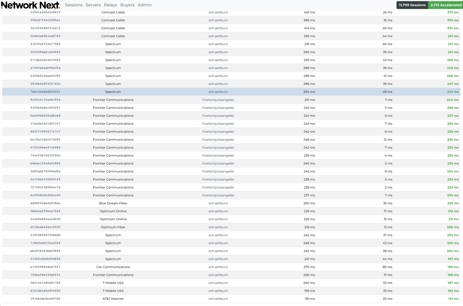 Here you see absolutely massive latency reductions 100ms+ up to 300ms. These are players going from literally unplayable network conditions down to the lowest possible latency given the distance to game server.